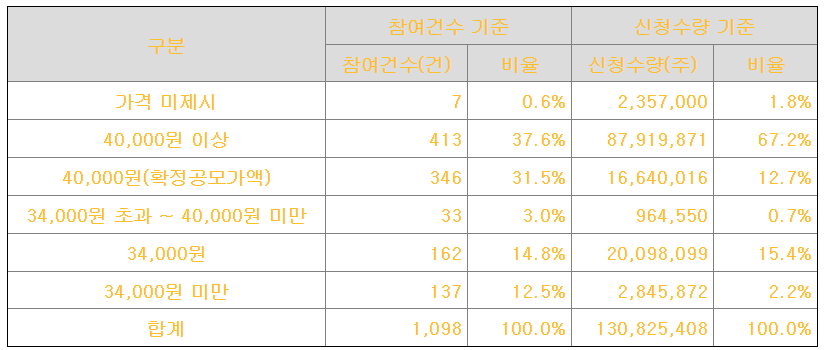 | 희망공모가액 | 34,000원 ~ 40,000원 |