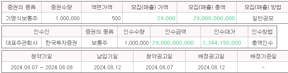 | 공모주 청약일 | 2024. 08. 07 ~ 08. 08 |