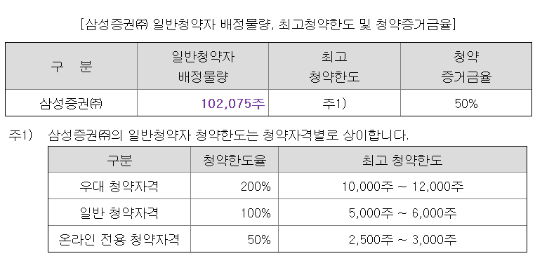 주관사 미래에셋증권, 삼성증권 청약자격 및 청약한도