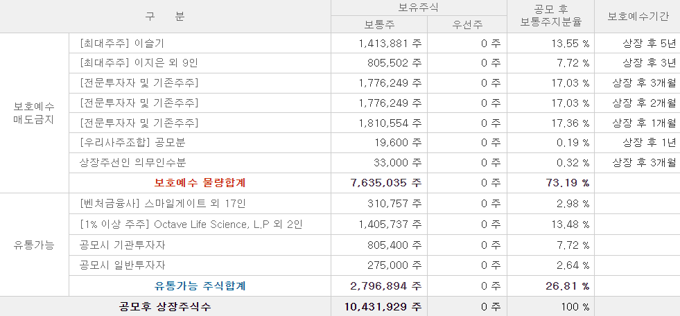 상장일에 유통되는 물량이 많으면 상장일에 주가가 하락하는데 영향을 줄 수 있어 확인하는 것이 좋습니다.