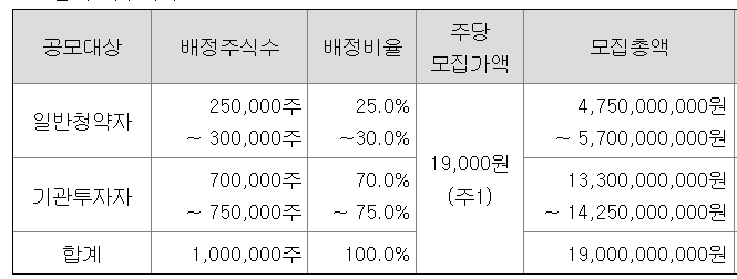 | 총공모주식수 | 1,000,000주 (신주 100%) |