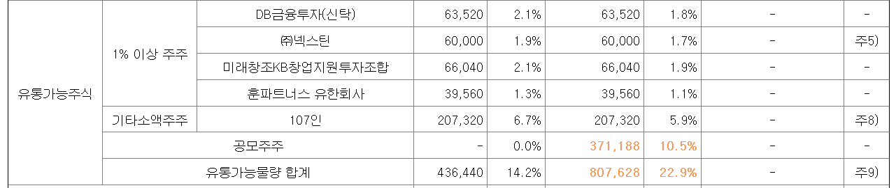 📌 상장 후 유통 가능 주식수 물량