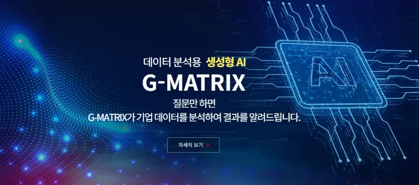 비아이매트릭스는 전 세계적으로 주목하고 있는 생성형 AI기술을 회사 솔루션에 반영하여 시장에서 선도적 위치를 차지하겠다는 계획을 세웠습니다. 올해 7월 기업용 생성형 AI G-MATRIX를 출시하였는데 이것은 비즈니스 데이터를 조회·분석·예측하는 솔루션입니다. 자연어 질문을 통해 데이터를 조회하고 분석하는 서비스를 제공하고 있습니다.