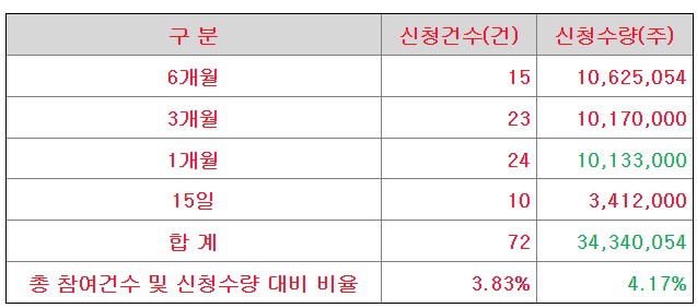 참여건수나 경쟁율은 좋은 결과가 나왔지만 의무보유 확약비율은 4.2%로 10%도 안 되는 부분이 아쉽습니다.