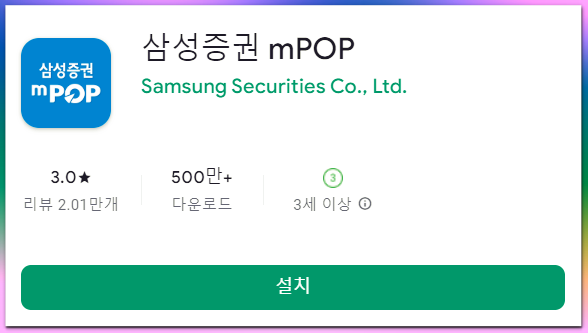 - 안드로이드 사용자: 구글 플레이 스토어에서 '삼성증권 mPOP' 앱을 다운로드 후 설치.