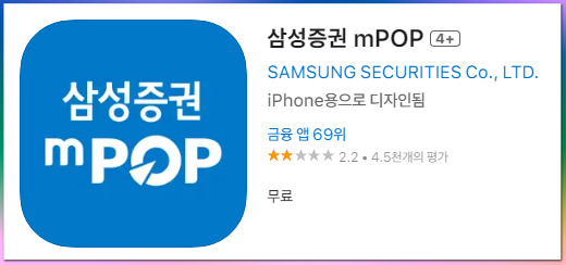 - 아이폰 사용자: 앱스토어에서 '삼성증권 mPOP' 앱을 다운로드 후 설치.