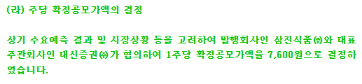 삼진식품 공모 정보
