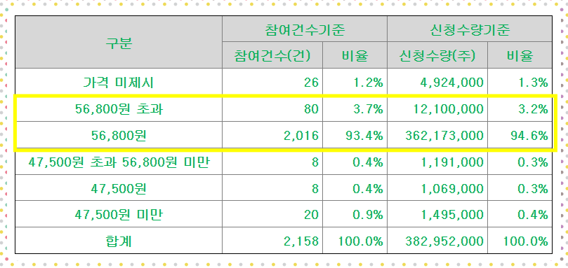 희망 공모가는 47,500원에서 56,800원 사이로 책정되었으며, 최종 공모가는 수요예측을 통해 56,800원으로 결정되었습니다.