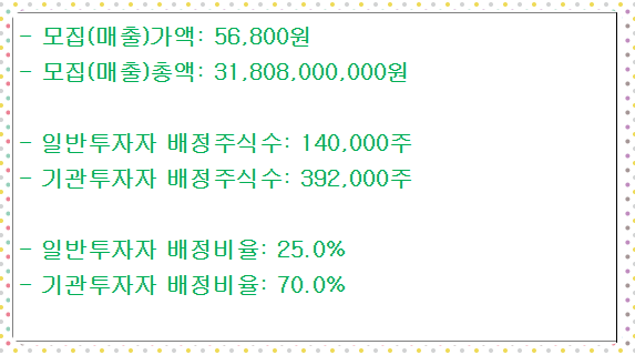 - 우리사주조합: 28,000주 (5.0%) - 청약증거금율 100%