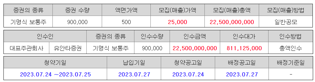 | 공모청약일 | 2023. 7. 24 ~ 7. 25 |