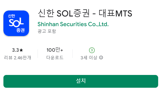 - 안드로이드 사용자: 구글 플레이 스토어에서 '신한 SOL증권' 앱을 다운로드 후 설치합니다.