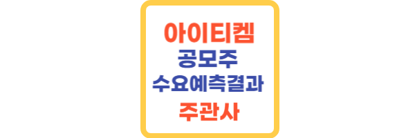 이번 글에서는 아이티켐의 공모주 정보부터 청약 및 상장 일정, 수요예측 결과, 주관사 KB증권의 청약자격과 한도, 상장일 유통물량 및 보호예수 현황 등에 대해 정리해보겠습니다. 아이티켐 투자에 관심있는 분들은 아래 본문에서 자세히 확인하시기 바랍니다.