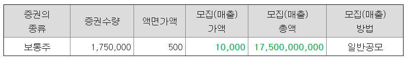 | 총 공모주식수 | 1,750,000주 |