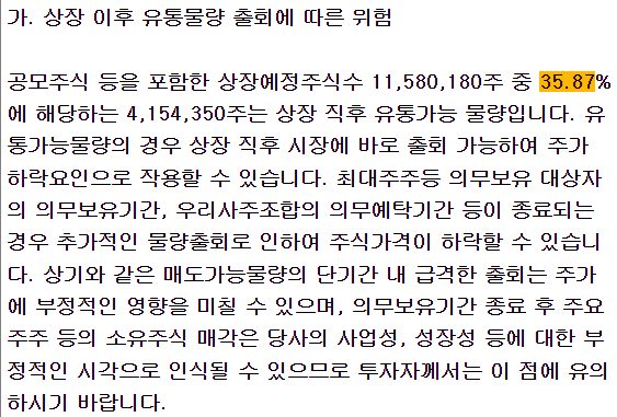 A5: 공모 후 약 35.87%의 물량이 유통 가능합니다.