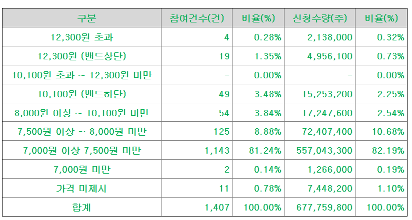 | 희망공모가액 | 10,100원 ~ 12,300원 |