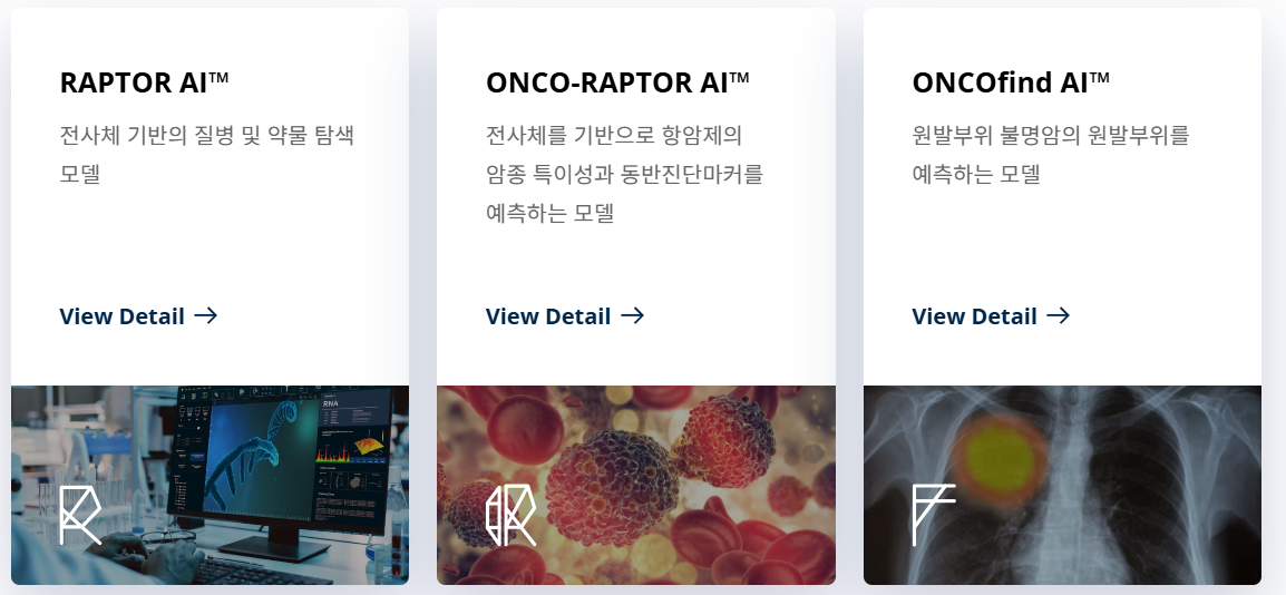 온코크로스는 AI 신약개발 플랫폼 기업으로, 자체적으로 개발한 [랩터 AI]를 통해 신약 후보 물질과 개발 완료된 약물에 대한 최적의 치료범위(적응증)을 발굴하는 서비스를 하고 있습니다.