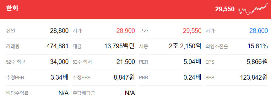 한화: 저PBR 관련주