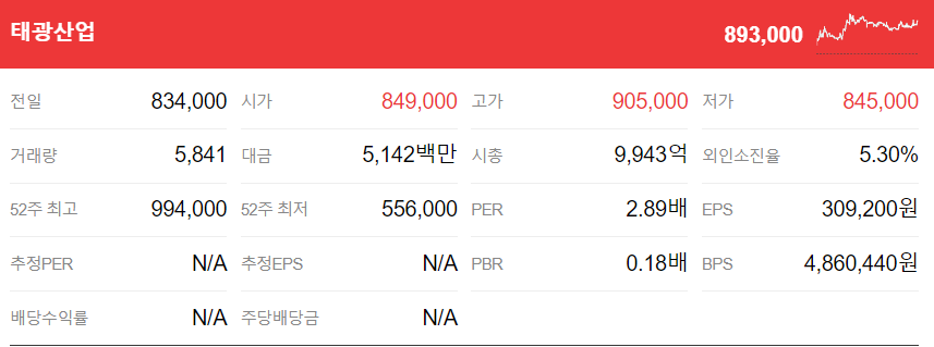 태광산업은 PBR이 0.18로, 화학업종에 속한 1조원대 시가총액 기업입니다. 영업이익 적자에도 불구하고 다른 수익원으로 순이익을 유지하고 있으며, 높은 주가에도 주목받고 있습니다.