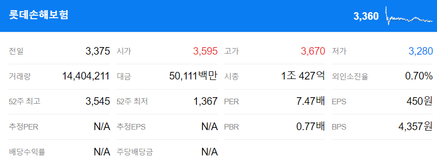 롯데손해보험: 저PBR 관련주
