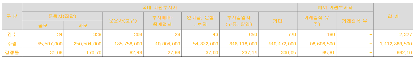 - 기관투자자 경쟁률 및 의무보유 확약 비율 확인