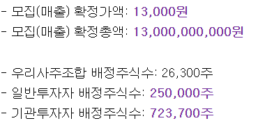 | 희망공모가액 | 9500원 ~ 10,700원 |
