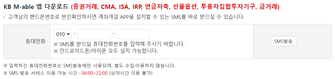 - 앱스토어/플레이스토어에서 'KB증권 M-able' 검색 후 설치