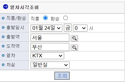 설 연휴 잔여좌석 및 열차 시각 조회