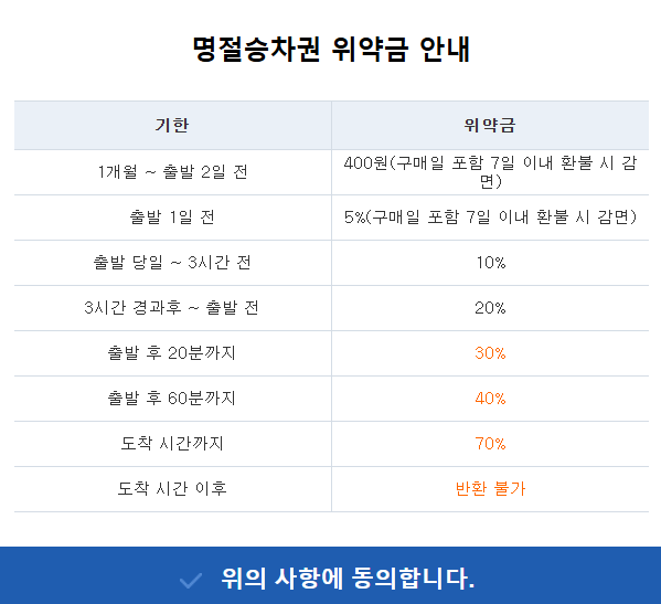 설 특별기간 기차표 취소 및 변경 시 수수료