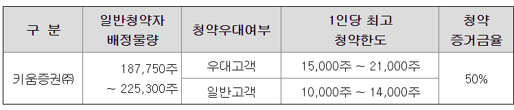 키움증 고객 우대 등급 기준에 따라 공모주 청약한도가 다릅니다.