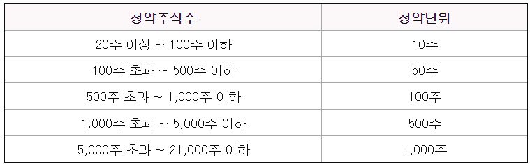 최소 청약주식수는 20주이며 청약단위는 아래에서 확인하세요.