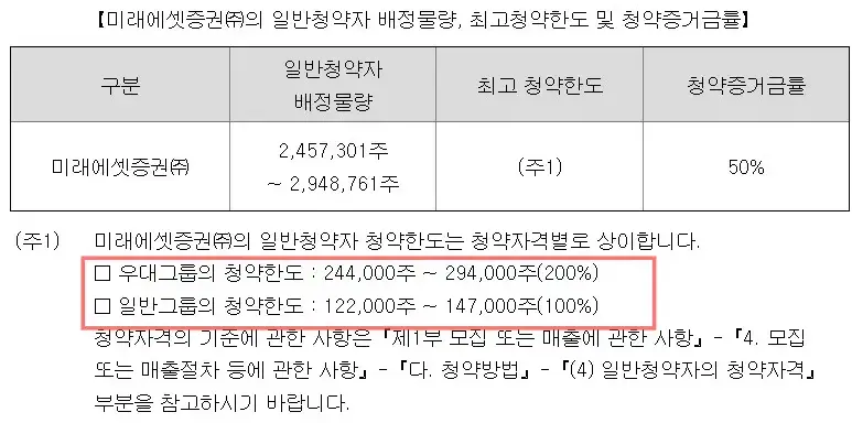 - 우대그룹 청약한도: 244,000주 ~ 294,000주 (200%)