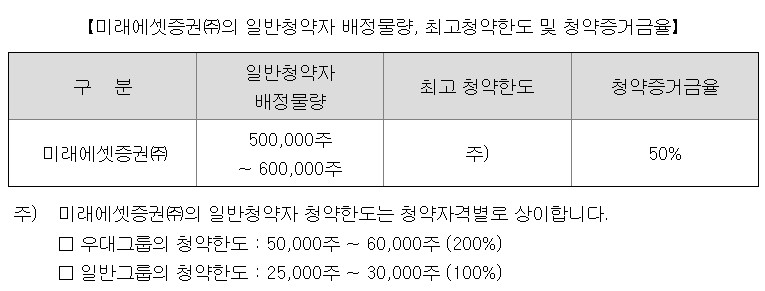 - 우대그룹 청약한도: 50,000주 ~ 60,000주