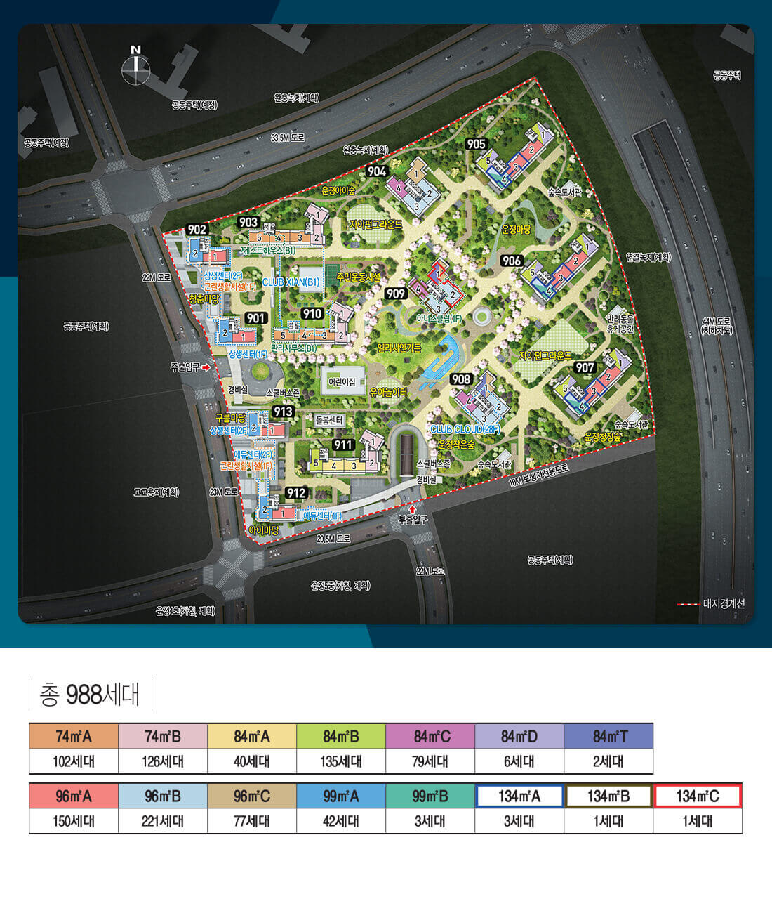 건축규모 | 총 988세대 / 지하2층~지상28층 |